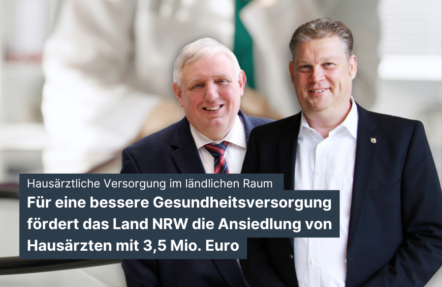 Für eine bessere Gesundheitsversorgung fördert das Land NRW die Ansiedlung von Hausärzten mit 3,5 Mio. Euro